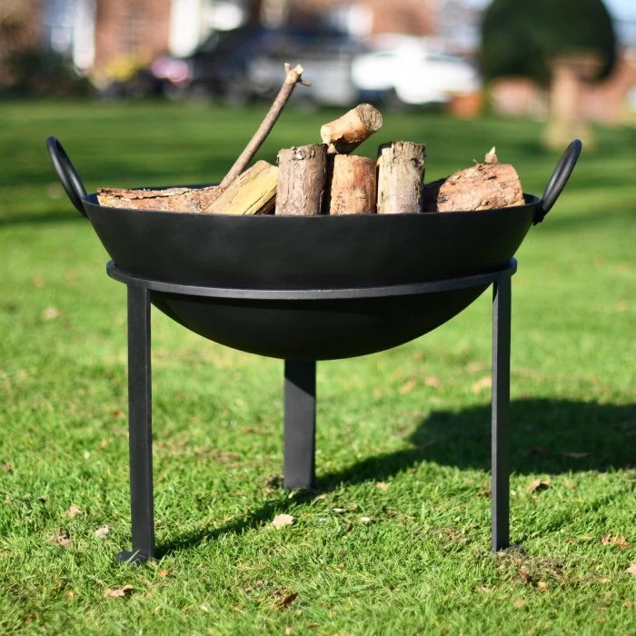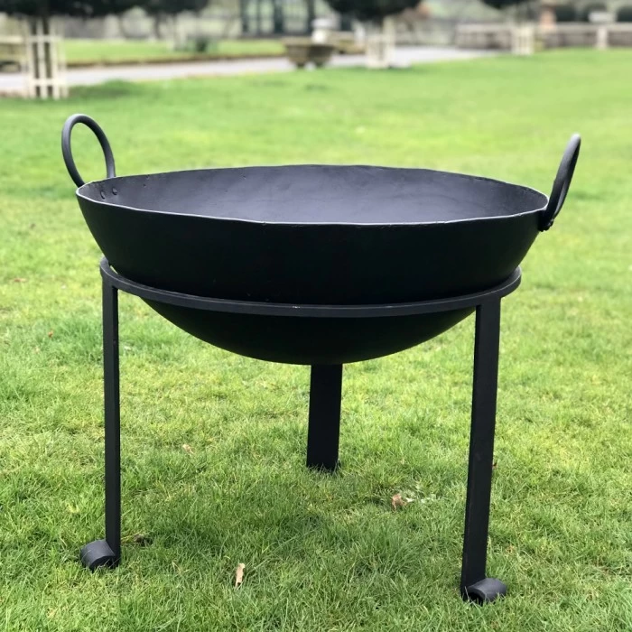 Traditionally handcrafted from iron and finished in a sleek midnight black, this fire bowl has been inspired by traditional Indian Kadai designs and even comes complete with its own stand in a matching finish. Ideal for smaller outdoor spaces with its compact size and easy storability, this fire bowl would look perfect placed on a patio or lawn. The bowl itself comes complete with two integral handles for easy movement, perfect when cleaning or cooking. This wood burner would also make an unusual planter when filled with bright blooms or fresh greenery.