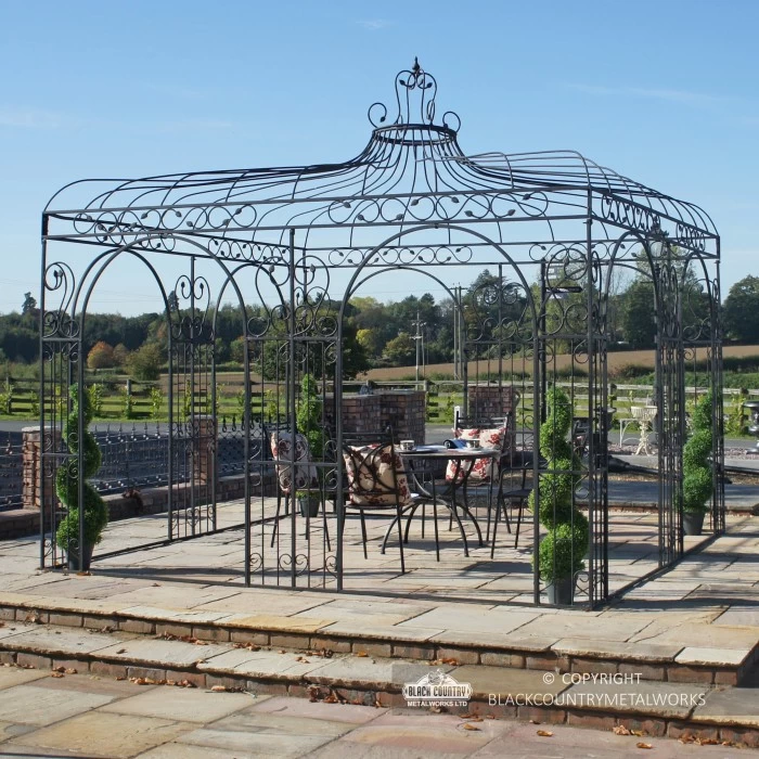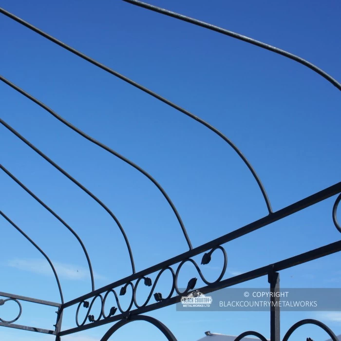 This is one of our most spacious gazebos and consists of four facade’s, each with no less than two beautiful arches. Sweeping arms across the top culminate in a crown in the centre.