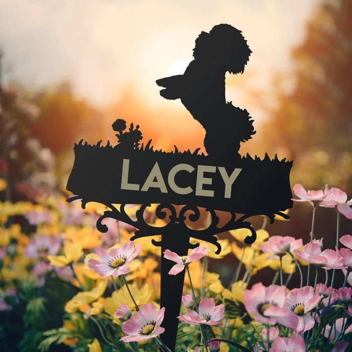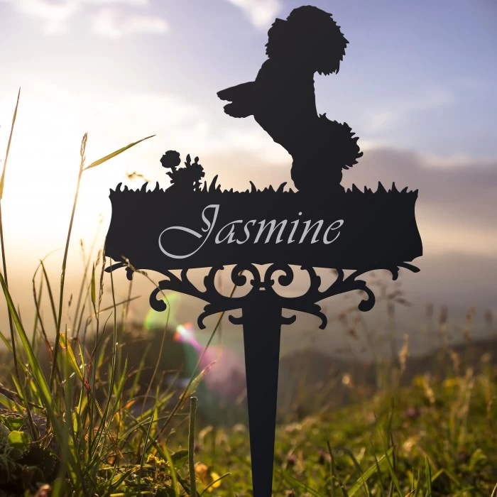 Crafted and designed by our in-house team, this wonderful ground spike has been created using robust steel and finished in a sleek midnight black finish to complement any exterior setting. Complete with a silhouette of a Bichon Frise perched upon its hind legs amongst the flowers and grass, this ground spike is a wonderful way to remember beloved pets which are sadly no longer with us. Alternatively, this spike will also show onlooks the love you have for this breed, whether you are an owner or breeder.Â