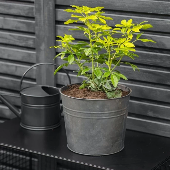 Crafted from galvanised steel and finished in a matt black finish, this bucket planter is ideal for outdoor and indoor spaces. Complete with two ribbed detailing on the planter, this planter allows the plant to have centre stage. Fill with your favourite planters or roses and watch as they grow in style.