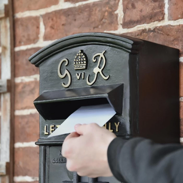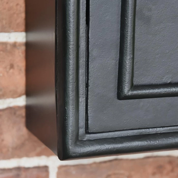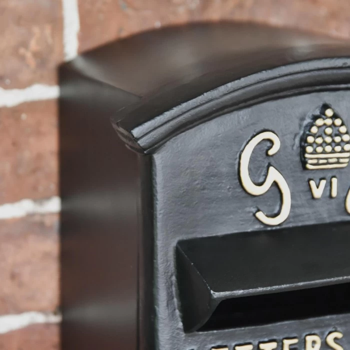 Crafted from a combination of aluminium and steel, this fantastic post box oozes traditional designs and style. Finished in a contemporary black finish, with gold hand painted lettering and crown motif detailing, this post box has a curved roof, so rainwater can easily run off. With a hooded aperture, letters can easily be deposited within, whilst the lockable door ensures letters remain safe and secure. Designed to be wall mounted in a sheltered area, this post box would look great on walls, columns or at entranceways.