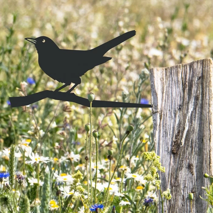 Finished in a sleek midnight black to highlight each unique detail, this charming tree spike decoration features the silhouette of a blackbird looking up into the sky with curiosity as it perches atop a branch. Crafted from thick steel, this quirky decoration has been designed to add natural charm to your exterior trees. Simply place onto your desired tree to create an instant sense of personality that will be enjoyed by your garden visitors for many years to come! This bird decoration would also make a lovely gift for the bird enthusiast in your life.