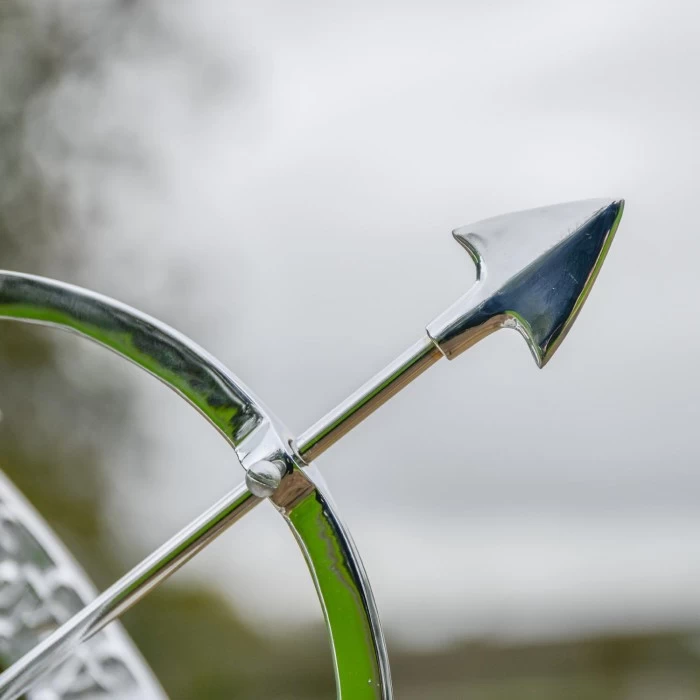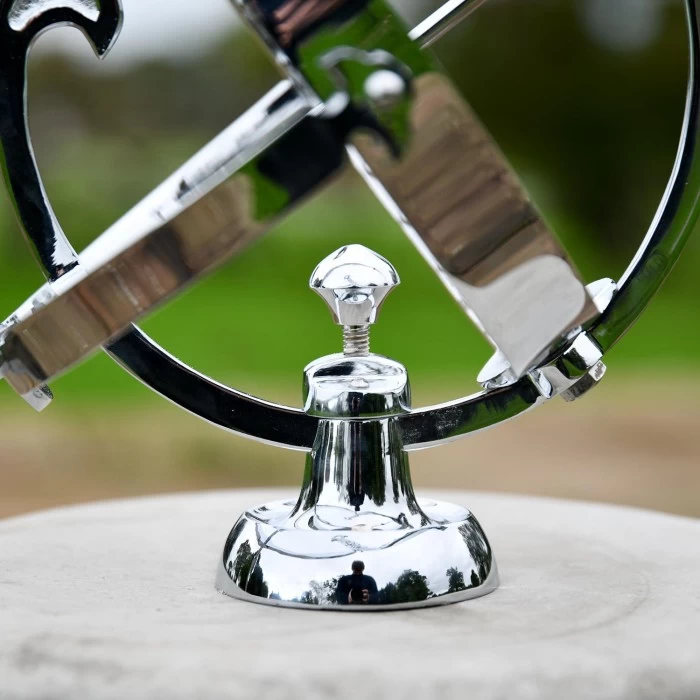 Visually beautiful, this wonderful armillary combines modernity with traditional style to create a unique and interesting focal point in any garden setting. Designed and crafted with solid brass, this armillary has been plated in a bright chrome finish, adding a contemporary appearance. With two bands and an integrated arrow piece, the inner band features Roman numerals. A central screw protrudes from the centre of the armillary base, which can be easily tightened or loosened based on the user’s preference in accordance with the earth’s axis. Column sold separately.Â