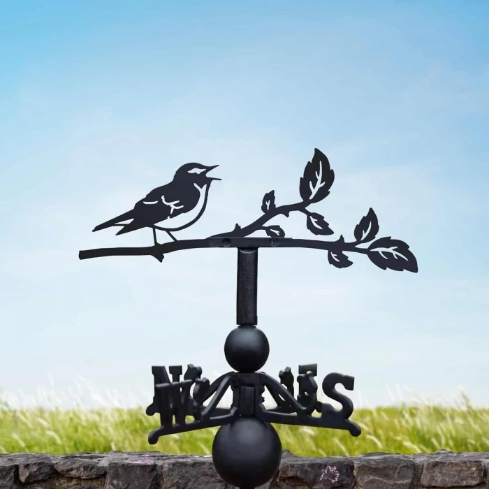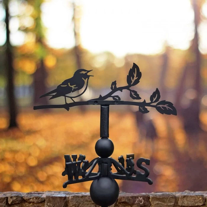 Made from a combination of cast iron and steel, this weathervane is complete in a sleek midnight black finish. Made here on site, this steel topper features a stunning design of a single wood warbler amongst an array of floral branches. bringing this beautiful bird to life; there is no better way to show off your love of birdwatching or nature in general, than with his original garden accessory.