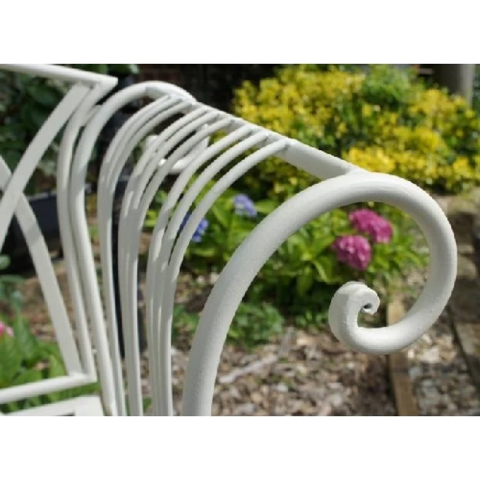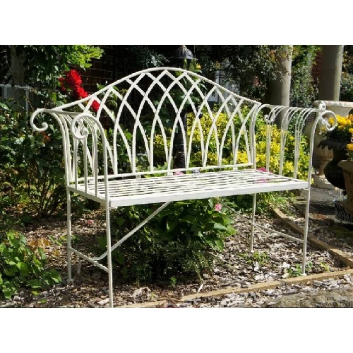 This beautiful garden bench has been handcrafted using wrought iron and finished in an antique white primer so that its simple and elegant style will speak for itself and will complement any garden or grounds setting. Truly traditional in style and shape, this bench will comfortably seat two people and features deep scrolled armrests and a lattice backrest. Place in the garden and soak up the summer sun with a glass of wine and a book.