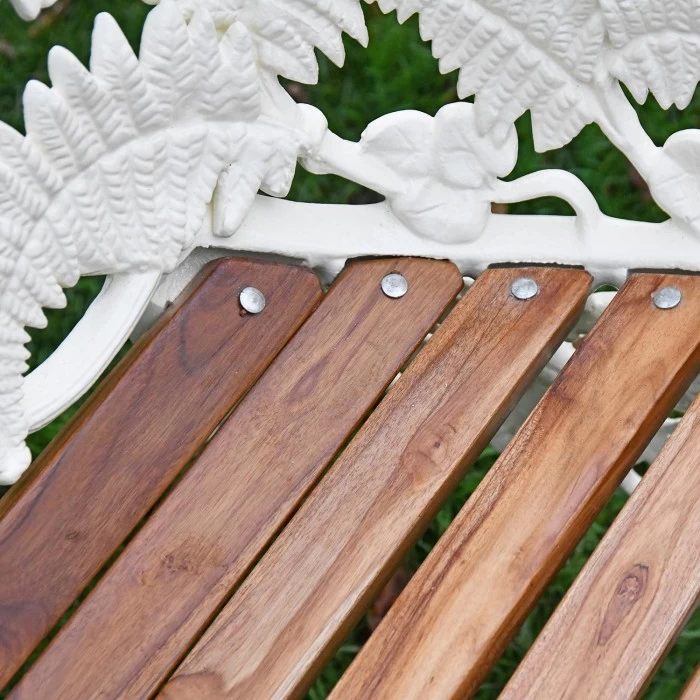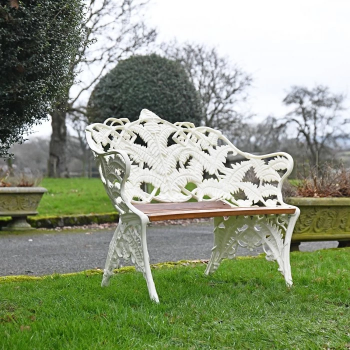 Inspired by classic period design, this simply stunning garden bench has been crafted from solid cast aluminium and finished in a beautiful antique cream base coat. The perfect way to add both comfort and style to any outdoor setting, this two seater bench features a beautifully detailed frame adorned with leaf-like motifs, two integral armrests, and four legs to ensure maximum comfort and stability during use. Complete with a classic slatted seat crafted from natural wood, this bench is a lovely way to enjoy your garden setting throughout all months of the year whilst in the company of a loved one. Simply place on a porch, patio or lawn to create the perfect relaxation spot!