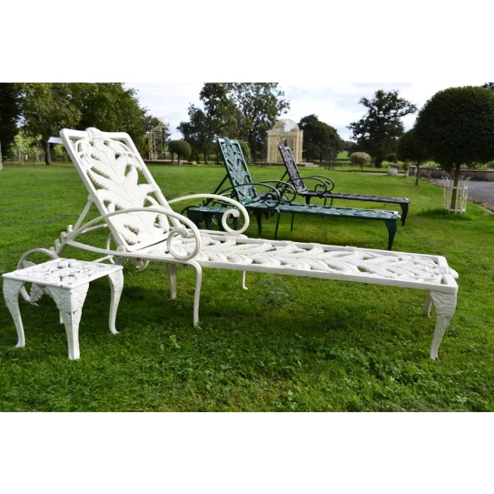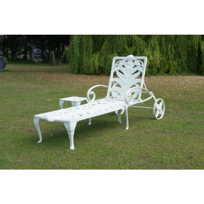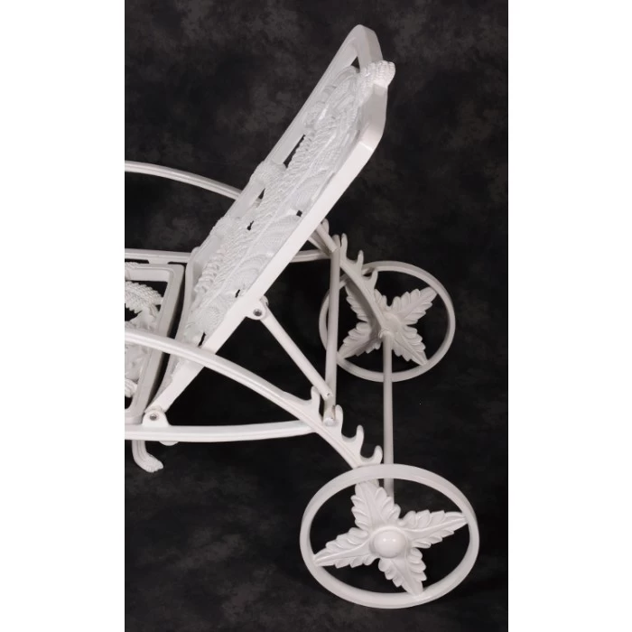Taking inspiration from classic vintage design, this stunning garden recliner is a wonderful way to add both comfort and unrivalled style to any exterior setting. Featuring delicate leaf-like detailing adorning the entirety of its framework, this recliner seat has been designed to comfortably seat one person and is perfect for relaxing on a warm summer’s day. This bench comes complete with an upright backrest, two integral armrests, five legs to ensure stability, and two large wheels for easy movement across your grounds. Expertly crafted from cast aluminium and finished in your choice of country cream, vintage green or midnight black, this robust sun lounger is a must-have piece for anyone that loves to spend time relaxing in the outdoors. Please use the drop-down box to select your desired finish.