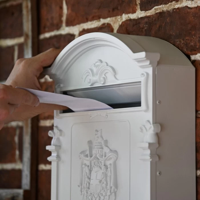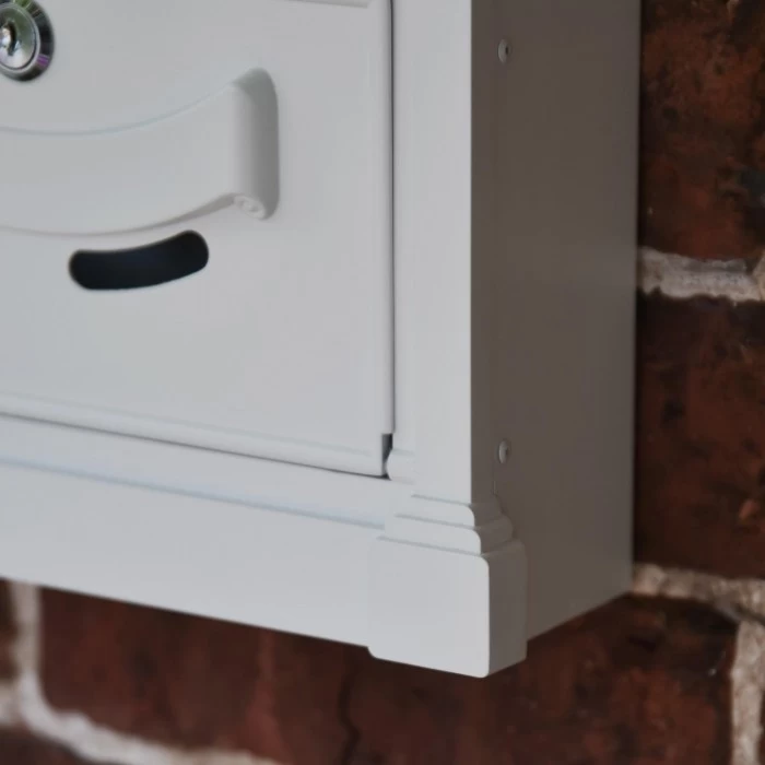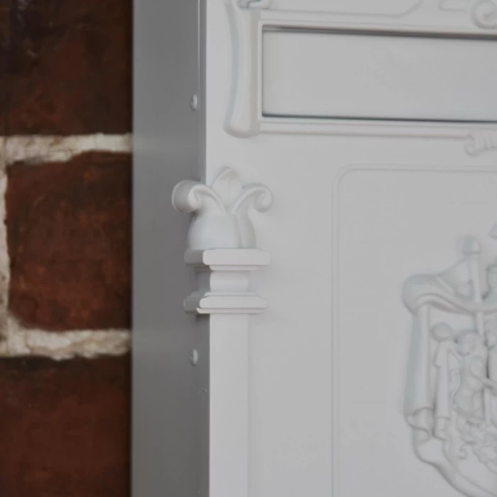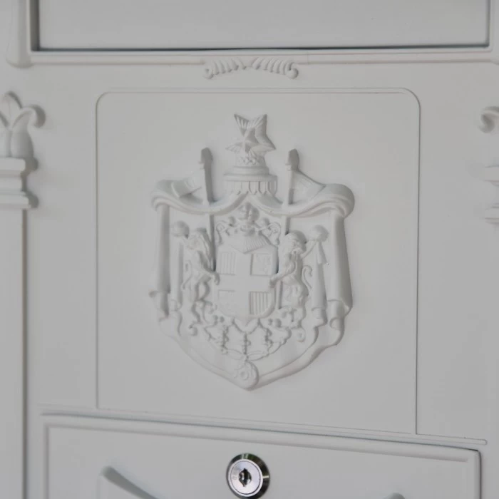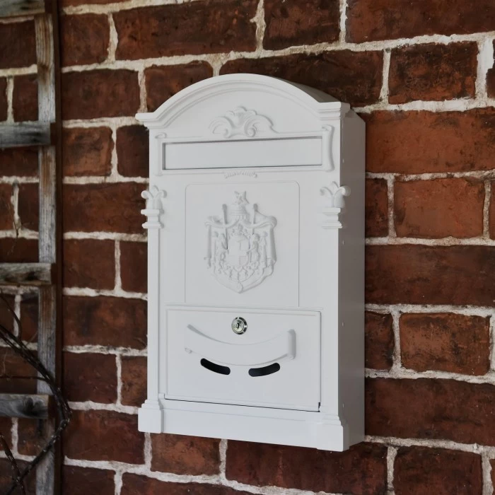 Finished in a bold white, this post box has been carefully cast from robust aluminium and has been designed for wall mounting. Complete with arched roof and ornate embossed detailing, this post box is a wonderful combination of traditional design and royal charm.The ornate central motif is stylish and features an intricate design that shows the craftmanship behind the design. It’s simple yet stylish slim-line design will certainly add a touch of contemporary character to your home or commercial premises.