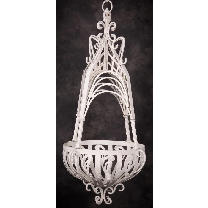 This hanging basket is the epitome of elegance and detail. Taking inspiration from the design of Cathedral and Church steeples, the hanging basket encompasses scroll and twisted designs throughout. The basket can be lined and trailing fauna and flowers can be planted. Made from wrought iron, this hanging basket is hand finished in a soft French cream colour. A beautiful addition to any outdoors area.