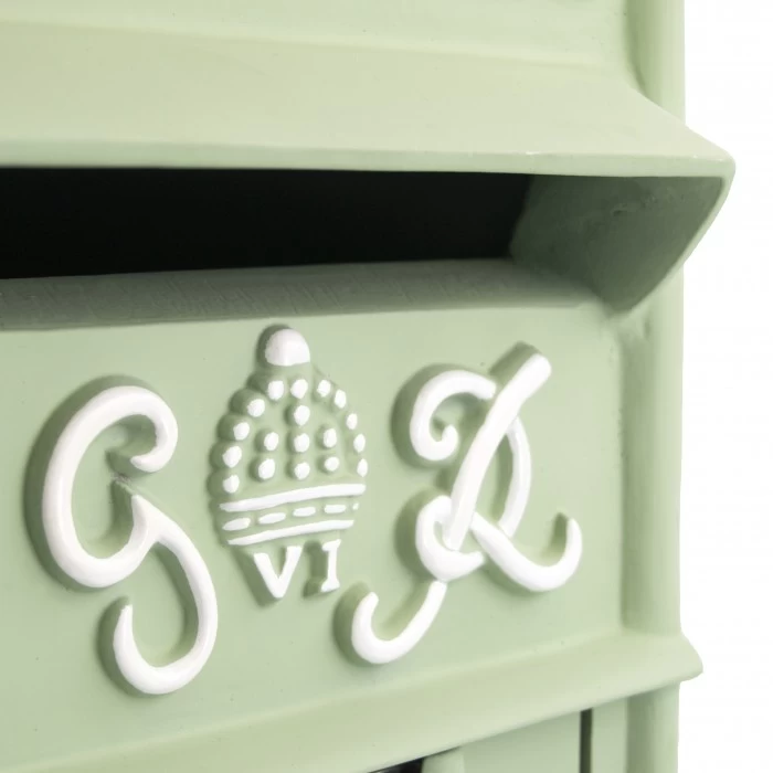 Crafted using high-grade cast aluminium casting to allow for an excellent level of detail and precision on the embossed motif and lettering. This classic GR post box front has been given a pastel green finish, updating the traditional styling of the piece with a more contemporary finish. An excellent replacement for an existing recessed post box front, or as a unique and authentic new addition to your property.