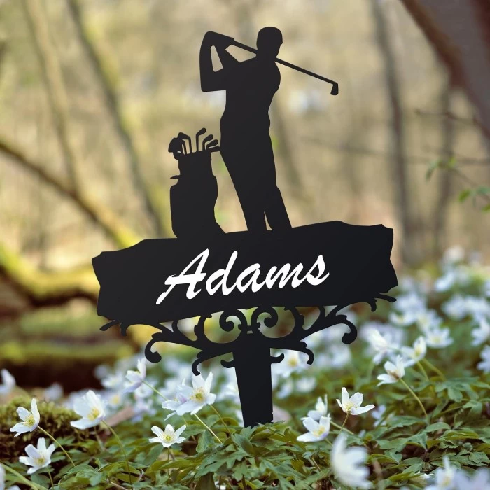 Crafted from high quality steel and finished in a sleek midnight black finish, this wonderful garden spike can either be used as memorial to lost loved ones or to show visitors, friends and family the love for your sport and hobby. Featuring the silhouette of a man teeing off with his trusty clubs perched next to him, this ground spike can be planted into the desired area, including grass, potted plants, and flowerbeds.Â