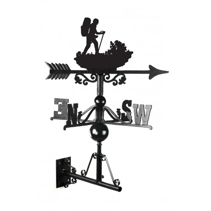The ideal garden accessory for anyone that loves to explore the great outdoors, this unique weathervane features the silhouette of a hiker complete with backpack and walking stick making their way through a grassy field of flowers and foliage. Finished in a sleek midnight black, this weathervane has been expertly crafted from a combination of cast iron and robust steel. Supplied with a universal bracket for easy wall, roof or shed mounting, this large design will add a sense of adventure to any garden setting! Also complete with a fletched arrow and directional arms for true authenticity.