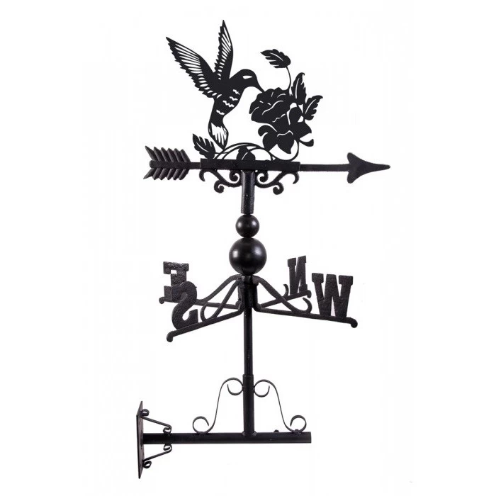 A timeless display of nature’s elegance, this beautiful weathervane features the silhouette of a hummingbird in all of its grace and delicate glory. Pictured hovering around an ornate bush of flowers, this stunning weathervane is the perfect garden accessory for anyone with a love or passion for nature’s finest birds. Crafted from thick steel and cast iron then finished in a sleek midnight black to highlight each intricate detail, this weathervane would look beautiful fitted to any exterior roof or wall against the backdrop of a blue sky. Supplied with a universal bracket, fletched arrow, and directional arms for easy installation and use.Â