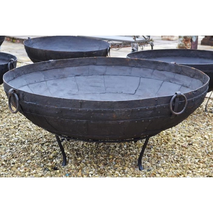 Ideal for large gatherings, parties and weddings, this large kadai bowl has originated from India and features authentic detailing throughout including integrated handles and riveted base. This Kadai fire bowl comes complete with its own scroll feet stand, ensuring that grounds and grass are protected from the heat when in use. The perfect garden accessory for the spring and summer months, but would equally look fantastic all year round for large party occasions like Christmas and New Years’. A wonderful gift or accessory to help entertain family, friends and guests. Perfect for private and commercial use. Â