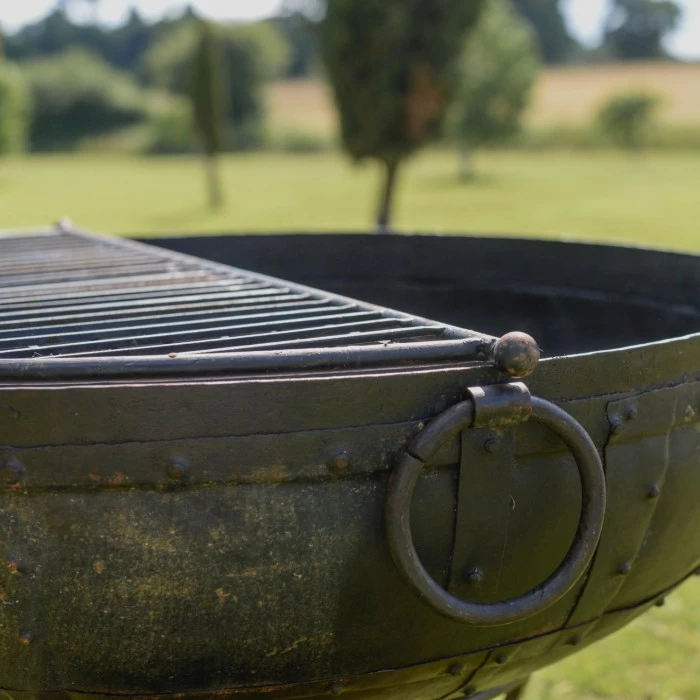 Please note that all Kadai bowls vary in size, weight, and decorative finish, including the number and style of handles, as pictured within listing. These features cannot be requested or changed as each product is individually handmade in wrought iron. All of our burners leave us with a light oil coating and will patina and turn an orange colour with age. This aging process will not affect the integrity and durability of the metal but we do recommend giving your burner a light rub down with oil after each use. For outdoor items, weathering may occur over time as the item is exposed to wind, rain and other natural elements. For further safety, care and maintenance advice about this product, please refer to our Fire Pits, Wood Burners & BBQs Care & Safety Guide.