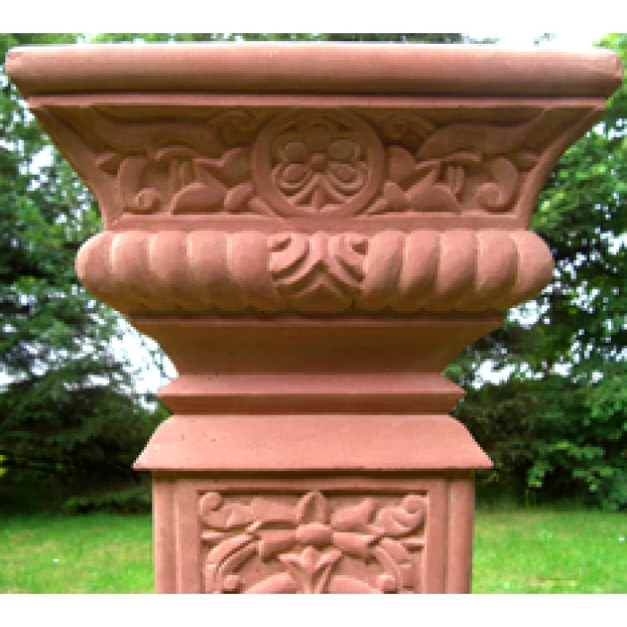 This plinth is larger and heavier than you’d ever imagine, hand carved from a solid block of red sandstone, the craftsmanship is remarkable many featuring the character and charm of original scuffs and chips that so often adorn originals of such age. The attention to detail and time taken to sculptor such a column is really stunning; the cost of this item does not reflect its true value.
