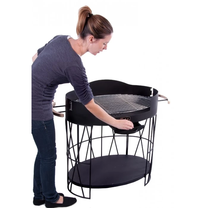 This large outdoor BBQ has been crafted from a combination of high-quality steel and robust natural wood. Finished in a sleek midnight black to perfectly complement almost any outdoor setting, this BBQ is a must-have for any home that loves to entertain during the warmer months of the year. This barbeque features an oval-shaped grill station, two integral wooden side handles for easy moving, a large frame to ensure stability, a lower shelf for storing firewood or BBQ tools, and a removable ash tray for easy clean-up. A practical and effortlessly stylish design that will add modern charm to your exterior space for many summers to come!