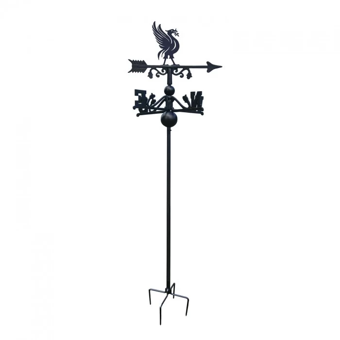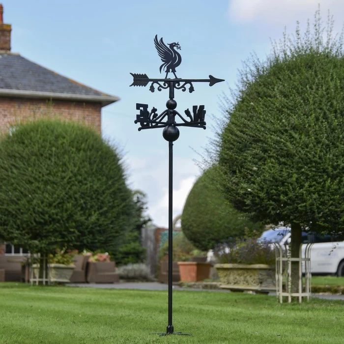 For those who ooze Liverpool F.C pride or are born and bred Liverpudlians, this free standing weathervane is a must in any garden or yard space. Designed and crafted by our in-house creative team, this garden free standing weathervane has been created using robust steel and cast iron and finished in a sleek midnight black finish. Complete with four integrated ground spikes within the central pole, the weathervane aspect itself includes a fletched arrow, directional arm and the Liver Bird topper, complete with branch in mouth. A fun and quirky alternative to traditional wall mounted or roof mounted weathervanes.