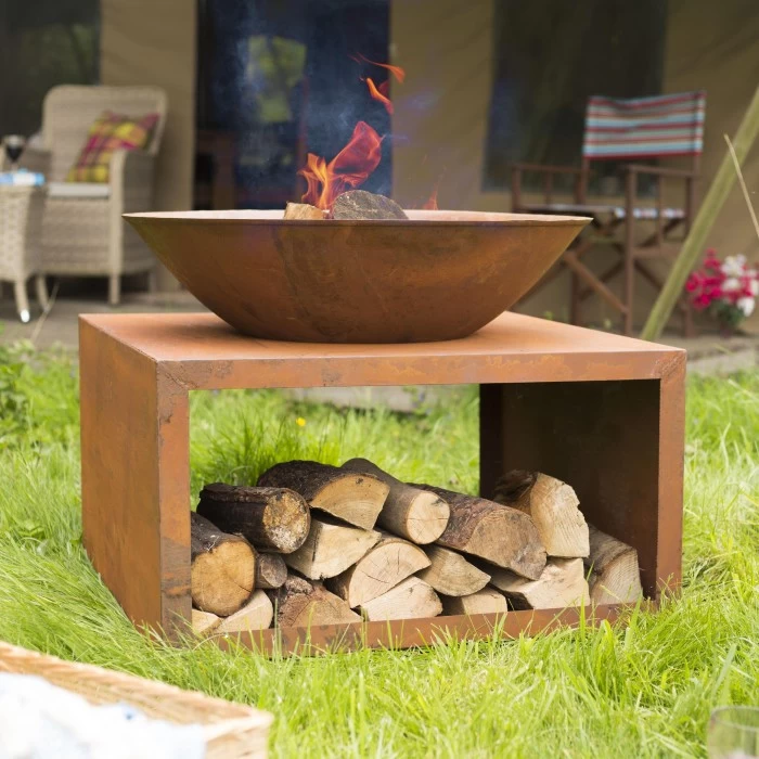 Inspired by modern Nordic and Scandi design, this truly beautiful fire bowl and log store is the ideal way to turn your outdoor space into a contemporary dreamscape. Crafted from high-quality steel and finished in a rustic metal effect, this design features a traditional fire bowl perfectly combined with a large rectangular log store fitted beneath it. Simply stack up your logs and light a fire to create an instant feature within your garden setting. A must-have for those who love to entertain outdoors during the summer months, this fire bowl will provide warmth and practicality for many years to come.