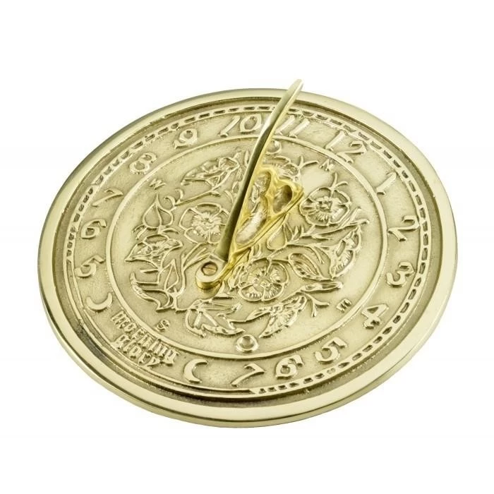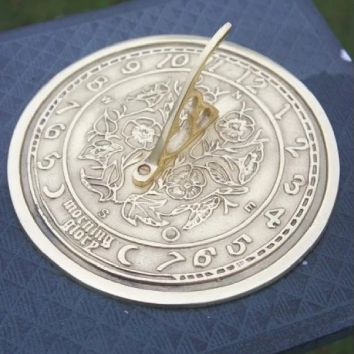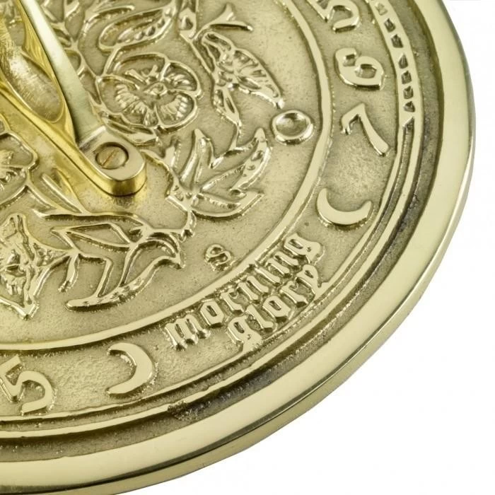 Cast from solid brass, this sundial exudes elegance which will give years of pleasure in any garden. With a matching directional compass at its centre surrounded by embossed flowers and leaves, the surround features daylight hours before the words ‘MORNING GLORY’ and two moons depicting night-time. Â