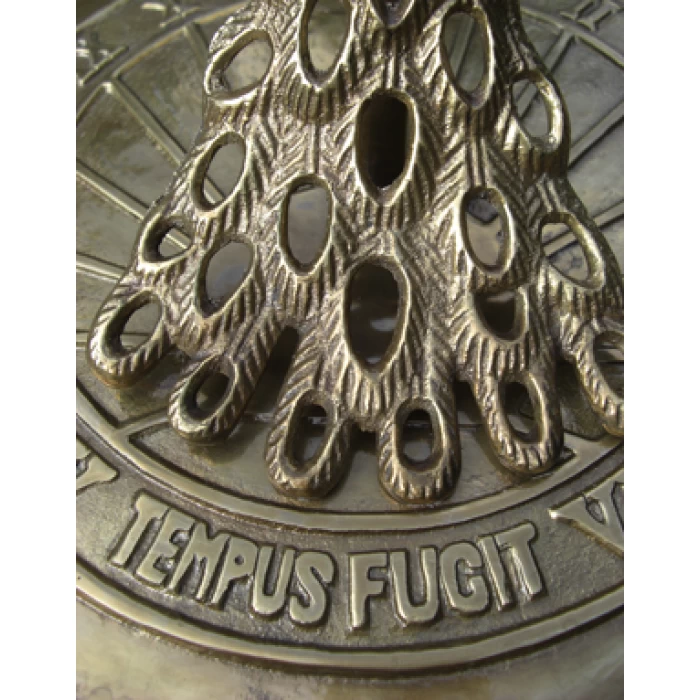This dial is produced in solid brass and has a antique finish, it carries the words ‘tempus fugit’, which in latin means ‘time flies’ Â