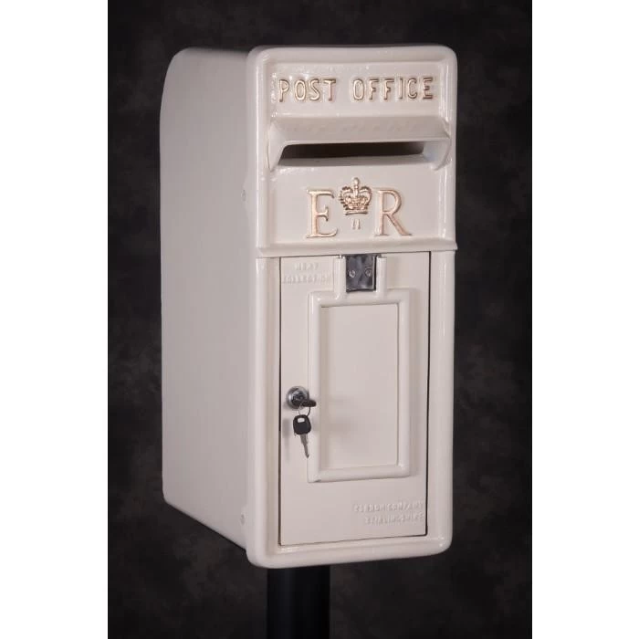Finished in a beautiful cream finish with hand painted gold lettering, this stylish and proud post box has been hand crafted using cast aluminium. Inspired by traditional ER post boxes lining British streets, this classic design comes complete with stand, allowing you to add a sense of sophistication and charm to your entranceway or porch. With a hooded aperture, lockable front and space for personalisation, this post box and stand is the ideal way to pay homage to an iconic British item.