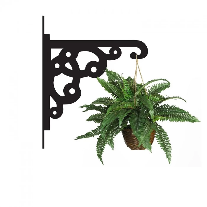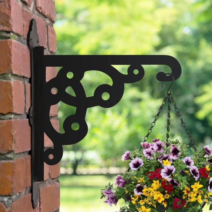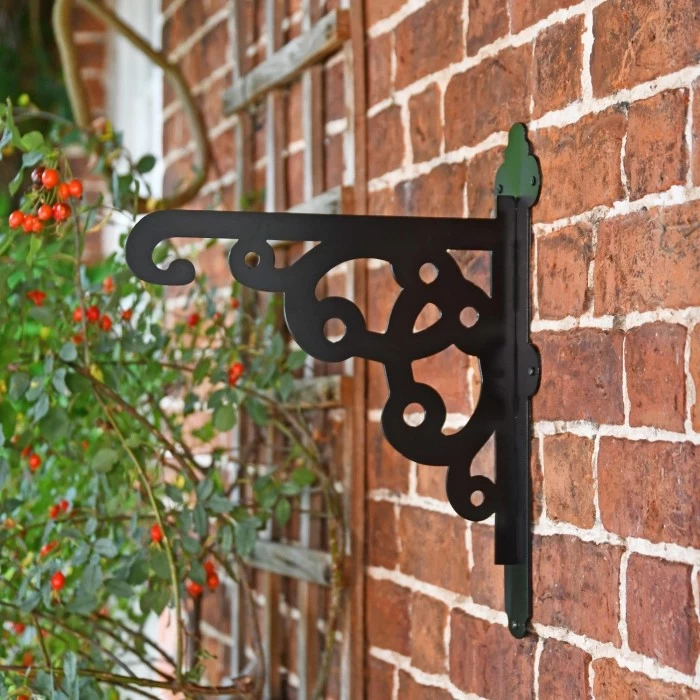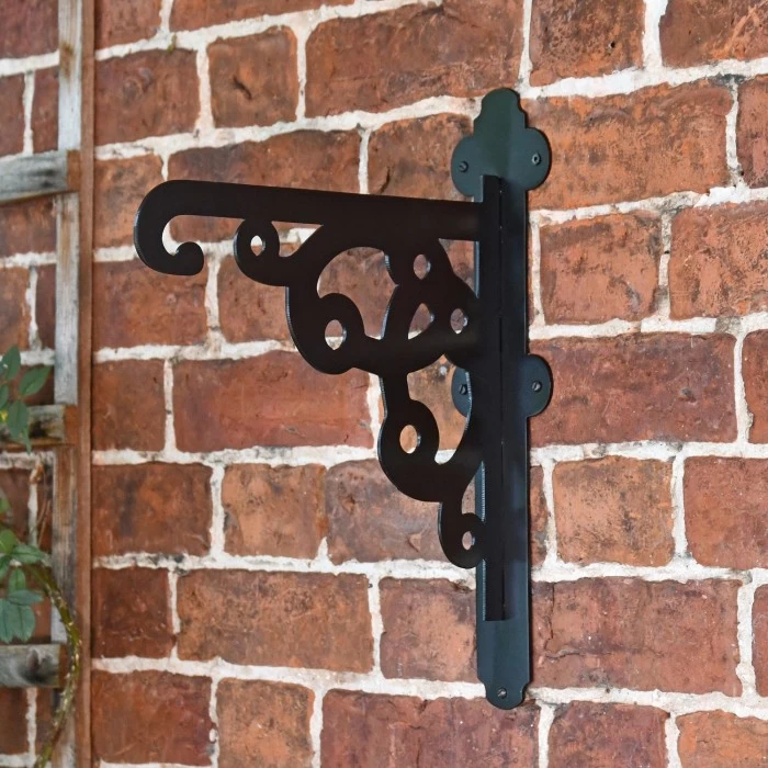 Taking inspiration from traditional period designs, this stylish hanging basket bracket has been crafted from high-quality steel and finished in a sleek midnight black to complement any exterior setting. Complete with a classic angled shape and a beautiful circle and scroll design adorning its inner framework, this bracket would add a touch of historical charm to any exterior wall setting. Supplied with a backplate, pre-drilled fixing holes, and an integral basket hook for easy installation and use. Simply add a matching hanging basket filled with flowers, herbs, or plants to create an instant feature within your chosen outdoor space.
