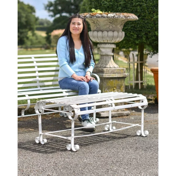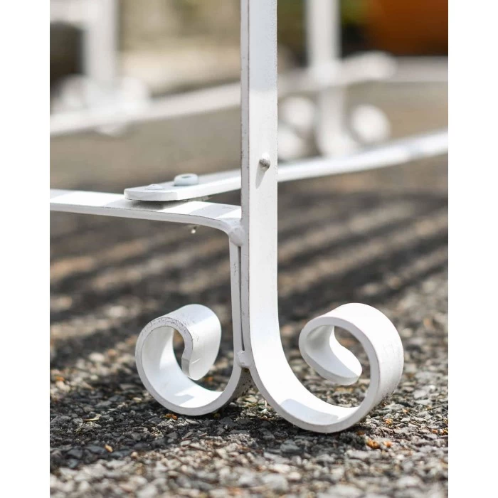 Expertly crafted from wrought iron and finished in a country cream base coat, this garden table can also double as a stool for additional seating in the garden. Complete with delicate scroll and twist detailing throughout the legs and framework, this traditional-styled table comes complete with four integrated legs, and additional metal framework for support whilst in use. Pair with others in the ‘Chatham Park’ range and place in the garden, patio or large porch area and be in full relaxation.