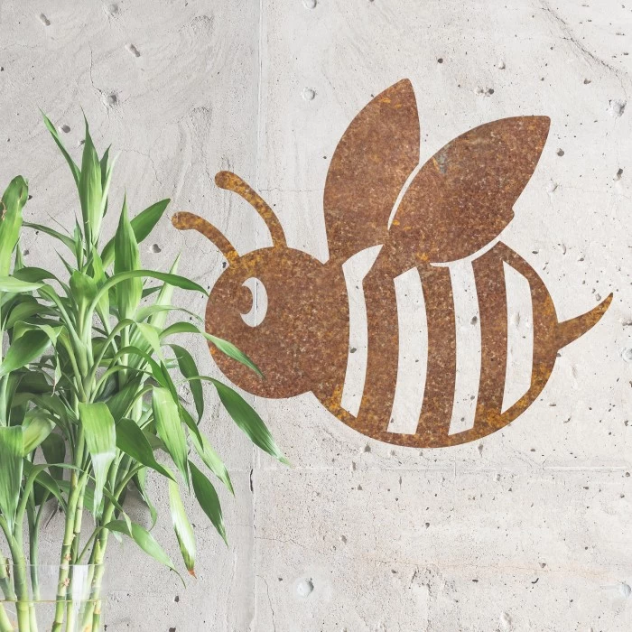 Crafted from high quality steel and finished in a beautiful rustic finish, this wall art is ideal for both indoor and outdoor wall mounting. Designed and crafted in-house by our creative team, this wall art features the silhouette of a cartoon bee, complete with stripes, large eyes, and stinger. A fun and quirky addition to any area of the home and garden. Keep as a single item or pair with others and get the whole family ‘swarming’.