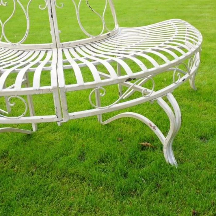 A unique combination of country inspired detailing and classic Victorian style, this vintage tree seat is the ideal way to add practicality and charm to any garden environment. Expertly hand-crafted from solid wrought iron and finished in a rustic cream effect, this tree bench features beautiful scrollwork detailing throughout as seen adorning its backrests, lower framework and integral feet. Designed to be positioned around an existing or growing tree, this unique design will also act as a tree guard to help protect your shrubbery from animals and rough handling. The perfect way to relax and enjoy your outdoor space during the warmer months of the year.