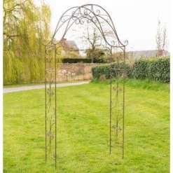 Crafted from high quality steel and finished in a rustic finish, this rose arch will add elegant style and character to the garden of any home. With delicate scroll detailing and Fleur de Lys embellishments throughout, it brings with it a romantic and quaint style. Ideal for placement over pathways within the garden or a way to separate garden and patio.