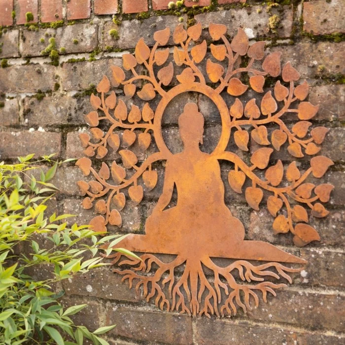 Inspired by mediation poses and toga, this wall art features a person sitting in the full lotus position surrounded by nature and branches. With a circular frame behind the head of the person and roots growing from beneath, it provides a taste that people can be at one with nature. Crafted from high quality steel and finished in a rustic finish, this wall art can be placed both indoors and outdoors for maximum relaxation and features an integrated hook for easy installation.Suitable for both indoor and outdoor use.