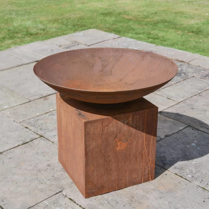 Complete with a wide fire bowl and tall stand, this fire pit is ideal for those who love to entertain outside. Crafted from high quality carbon steel and left to naturally age, this fire pit can be placed outside all year round, bring style, warmth and charm to your outside area. Stylish and modern, this firepit is ideal for gathering the whole family round for any occasion.Â
