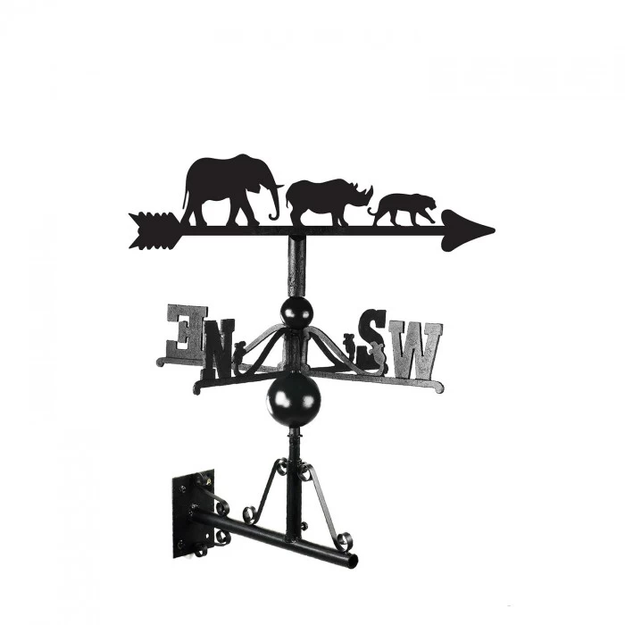 Crafted and designed using high quality steel and iron, this wonderful weathervane features three of Africa’s most famous and recognisable animals, Elephant, Rhino and Lioness, walking along the strait of the arrow. Inspired by the David Shepherd Wildlife Foundation logo, this weathervane is ideal for Safari lovers and those who love these majestic animals. Complete with directional arms, fletched arrow and universal mounting bracket, this weathervane will take pride of place on homes, outbuildings, or entrances to zoos