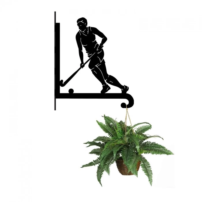 Show off your love of the sport with this amazing female hockey player hanging basket bracket! Made from a combination of cast iron, and steel on-site by our expert team, this hanging basket bracket comes ready for mounting and is complete in a sleek midnight black finish. With a classic style, this features a lone female player in full flow in a competitive game. Whether you play yourself, or are just a fan and want to showcase this, there is no better way than with this handmade item!