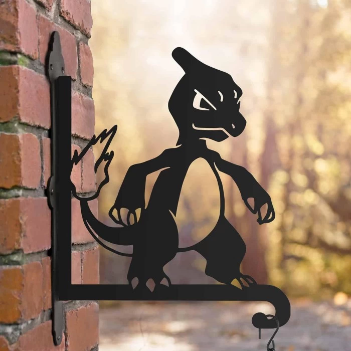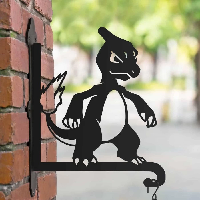 A must-have for any Pokemon fan! Made from a combination of cast iron, and steel on-site by our expert team, this hanging basket bracket comes ready for mounting and complete in a sleek midnight black finish. With a detailed design showing a topper detailing the iconic and well-known character of Charmeleon; a first evolution fire lizard character from the iconic series of video games. Shown here in amazing detail, the character truly comes to life and is a welcome addition to any garden space.