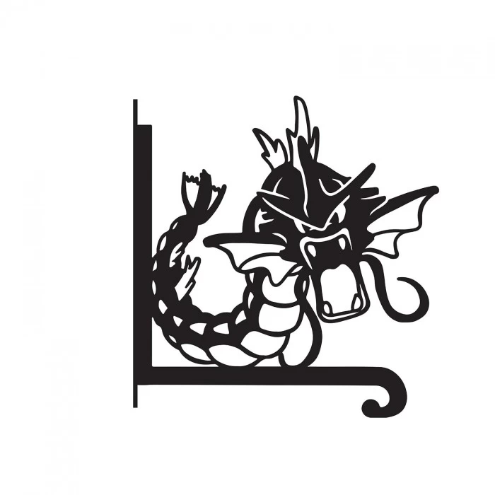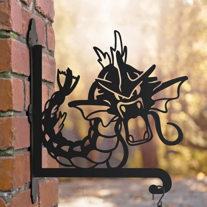 A must-have for any Pokemon fan! Made from a combination of cast iron, and steel on-site by our expert team, this hanging basket bracket comes ready for mounting and complete in a sleek midnight black finish. With a detailed design showing a topper detailing the iconic and well-known character of Gyrados; a water and flying character from the iconic series of video games, first shown in Generation I. Shown here in amazing detail, the character truly comes to life and is a welcome addition to any garden space.
