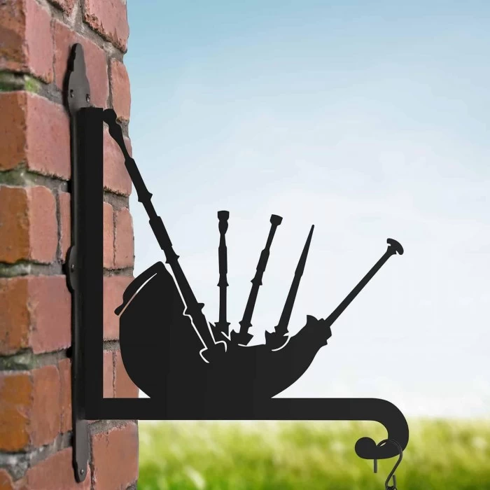 Made from a combination of cast iron, and steel on-site by our expert team, this hanging basket bracket comes ready for mounting and is complete in a sleek midnight black finish. With a contemporary style, this comes with a topper showing a bagpipe in amazing detail. There is no better way to show off your Scottish heritage than with this amazing hanging basket bracket.