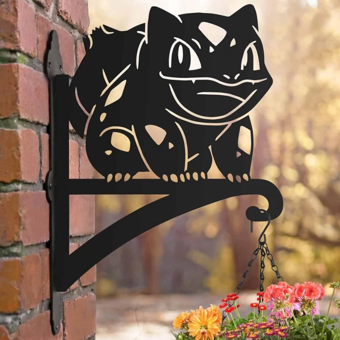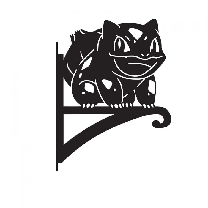 A must-have for any Pokemon fan! Made from a combination of cast iron, and steel on-site by our expert team, this hanging basket bracket comes ready for mounting and complete in a sleek midnight black finish. With a detailed design showing a topper detailing the iconic and well-known character of Bulbasaur; an unevolved amphibian character from the iconic series of video games. Shown here in amazing detail, the character truly comes to life and is a welcome addition to any garden space.
