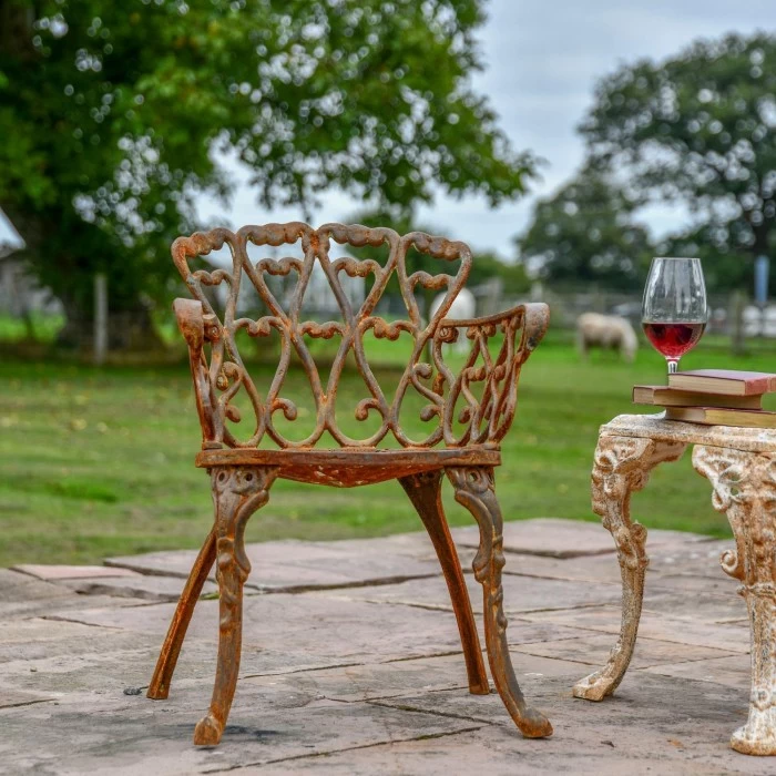 Ideal for one person, this quirky garden bench has been expertly handcrafted from robust cast iron and left finished in a rustic iron effect. Complete with a curved backrest, two scrolled armrests, and four integral legs, this bench features delicate heart-shaped scrolls across its framework and would look simply lovely against a backdrop of flowers or foliage. Ideal for placement within a lawn or patio area, this outdoor seat is the perfect way to enjoy your garden throughout the warmer moments of the year!