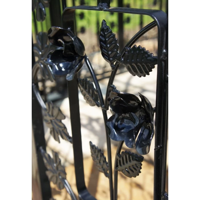 This fabulous confection, of mainly solid rod and heavy gauge materials, “Scroll and Leaf” construction, takes at least three Blacksmiths, over three weeks to create, with each and every minute detail, lovingly fitted into place, by hand.