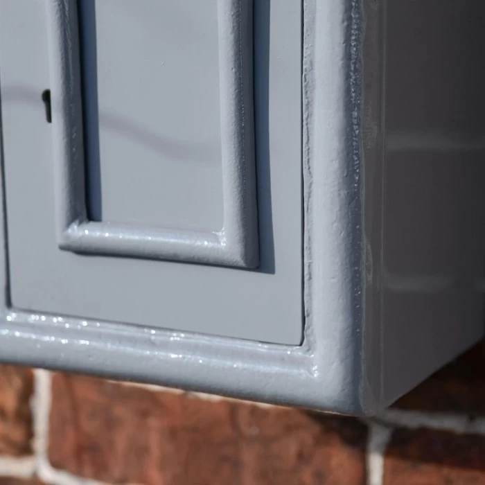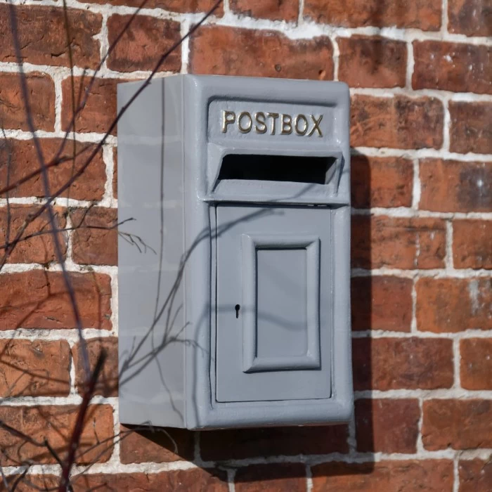Crafted from a combination of robust steel and heavy duty cast iron, this post box is the ideal accessory for adding the exterior of your home. Finished in a modern grey with hand painted gold ‘POST BOX’ lettering, this post box features a wide hooded aperture to ensure mail remains safe and secure within. Designed to be mounted in a sheltered area and complete with a lockable door and pre-drilled holes in the back for easy installation. Supplied with two sets of keys.
