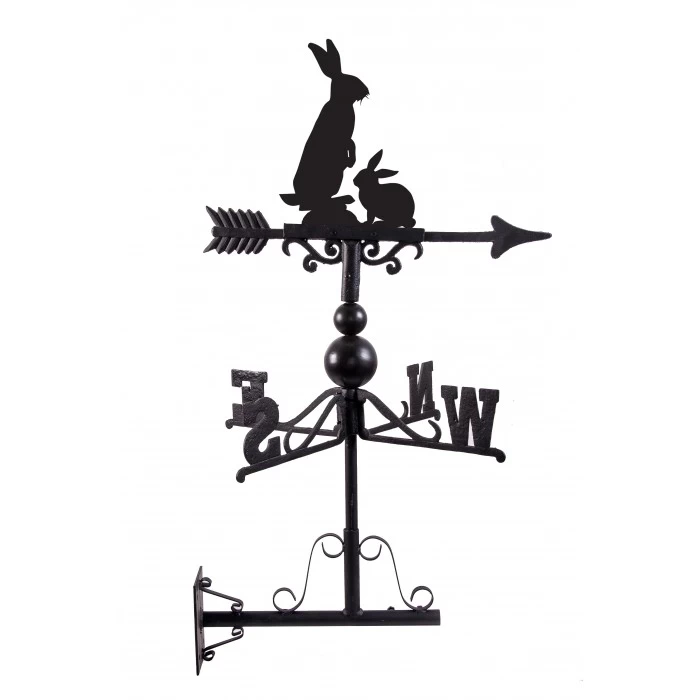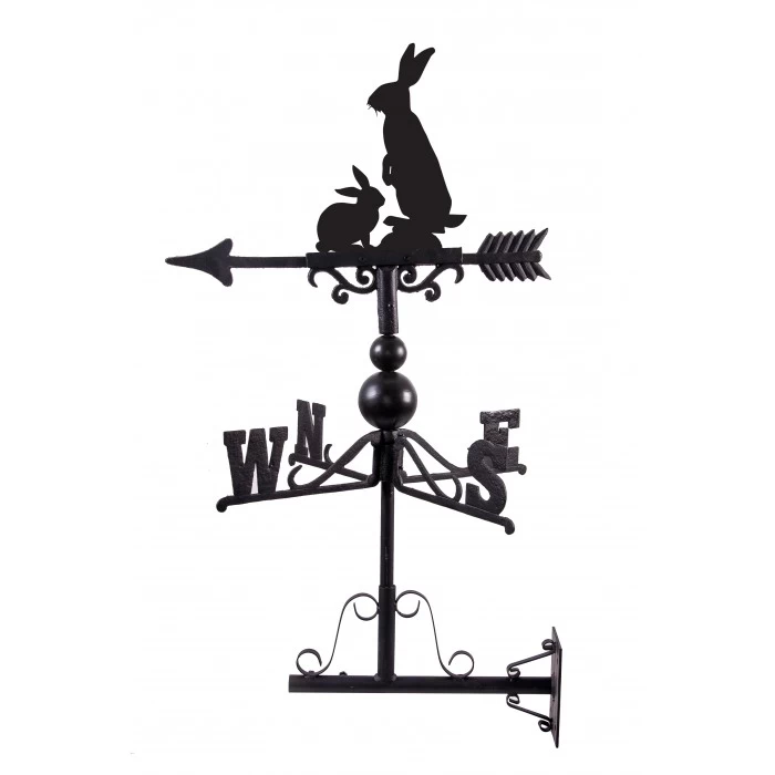 Crafted from a combination of cast iron and steel, this weathervane has been finished in a sleek midnight black finish to complement any existing setting. Designed and created by our in-house creative team, this weathervane features a rabbit and a bunny as they look for predators in the field. Complete with fletched arrow, directional arms or universal mounting brackets for easy installation.