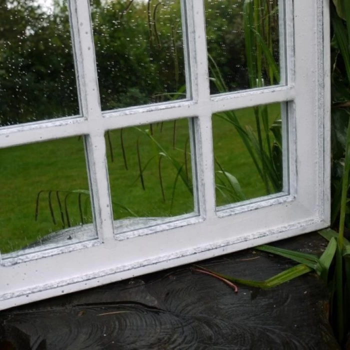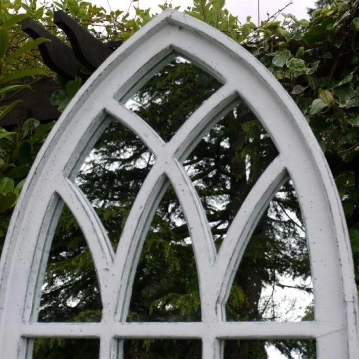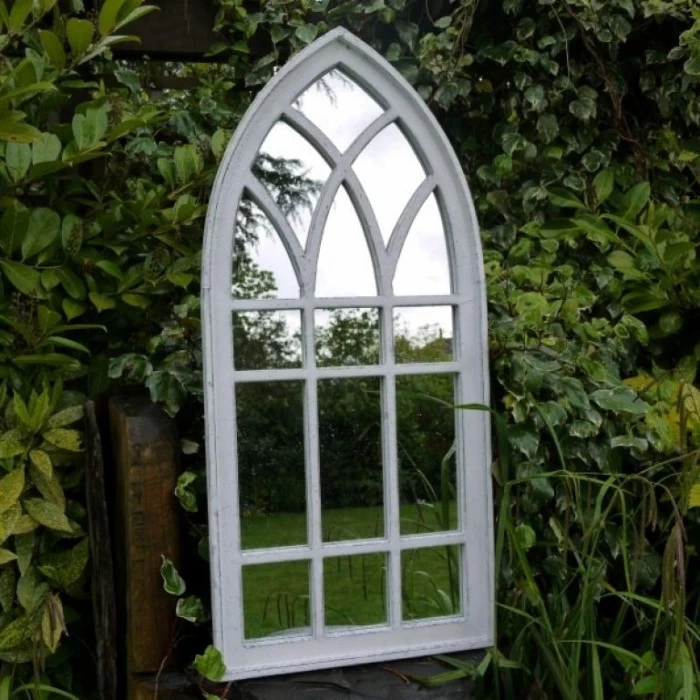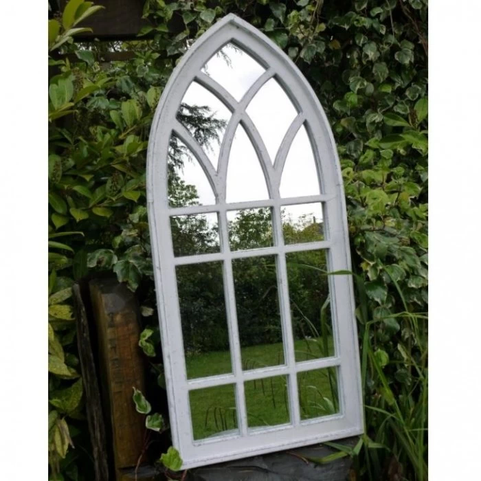 Crafted from high-quality metal, designed in an arch that forms a pointed top, this garden mirror is complete in a distressed white finish, perfectly suited to any garden space. This tall garden mirror will provide increased light through the reflection from your garden, whilst also adding a degree of authenticity and originality.